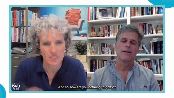 Susan and I are just two people, and we’re probably not going to change anything more than the tenor of the discussions between the two of us. But she gives me hope—a lot of it. I hope everyone in the dignity movement finds someone like Susan who’s on the opposite side of their political views and opens up a relationship with that person. I hope good listening and curiosity, and a little humility, will guide a flourishing of those relationships. I hope those relationships–one by one–help reduce anxiety, prevent violence, and lead to better problem-solving.